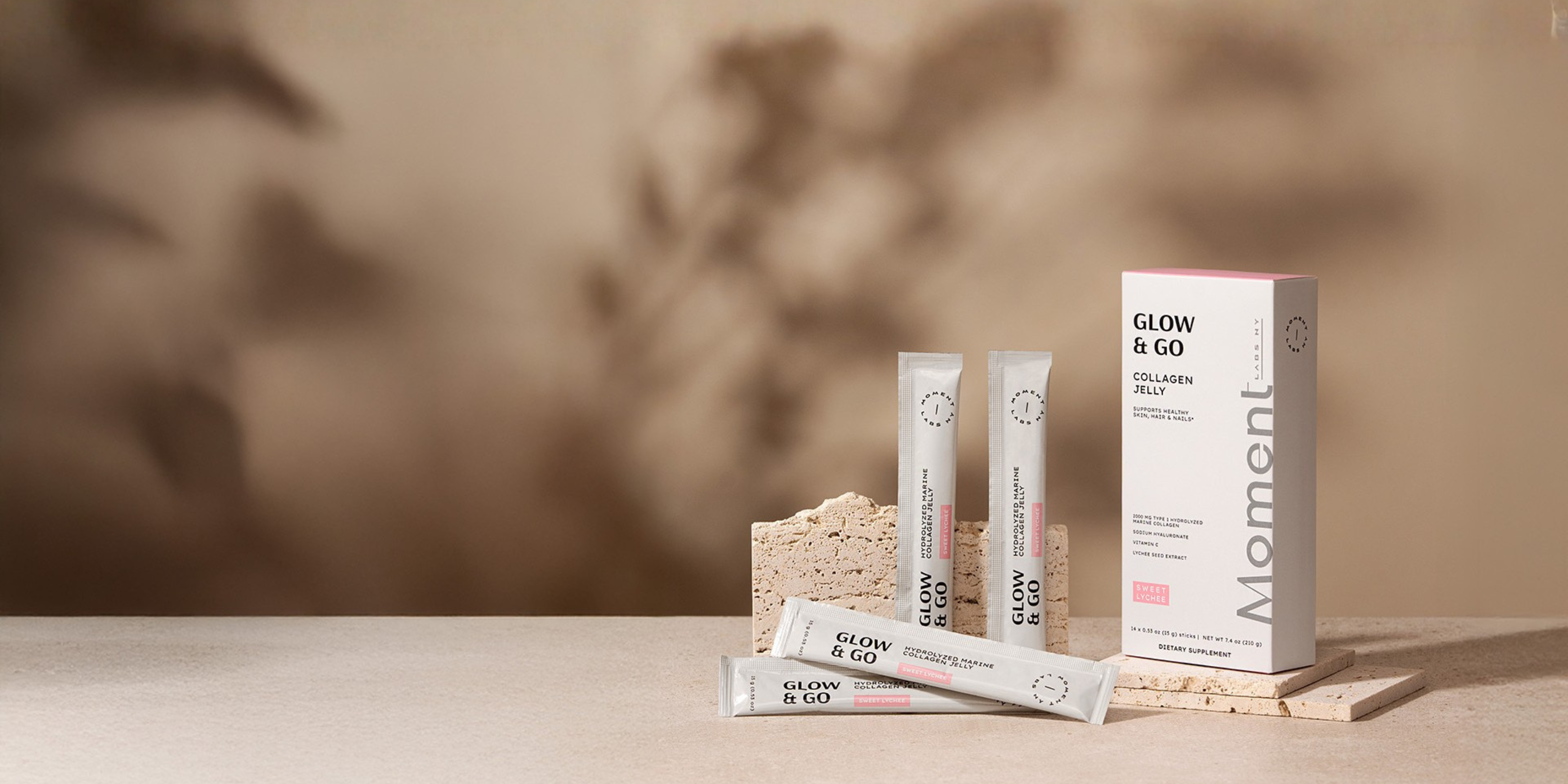 Glow & Go combines high-quality ingredients, including hydrolyzed marine collagen, vitamin C, sodium hyaluronate, and lychee seed extract to support skin health, hydration, and radiance. Each ingredient is carefully selected to promote overall wellness while fitting seamlessly into your busy lifestyle.